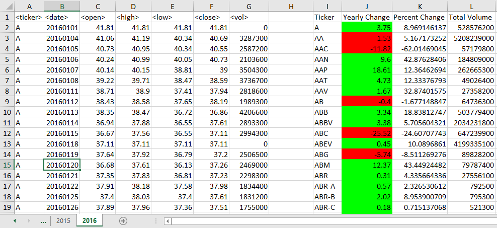 Coding in VBA to crunch excel spreadsheet data wasn’t very fun, but it was good mental exercise and got my mind working. I found the language obtuse compared to python, and making mistakes that output to the spreadsheet was annoying to clean up. Not to mention the numerous times I crashed the excel application with infinite loops, lol. Either way, I am proud of the code I wrote. I don’t do much stock analysis in excel, and typically use SQL and python for that stuff, but I still might revisit this exercise and use it to crunch some of the stock and option data I collect. My code produces the I-L values: